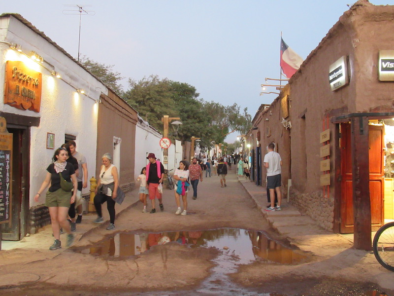 Dans la rue principale, Caracoles, des hordes de touristes, je n’avais pas vu autant de personnes en même temps depuis mon arrivée au Chili. Dans cette rue se partagent l’espace, les agences d’excursions, les restaurants et les magasins de souvenirs et les gens déambulent, après leur excursion de la journée.